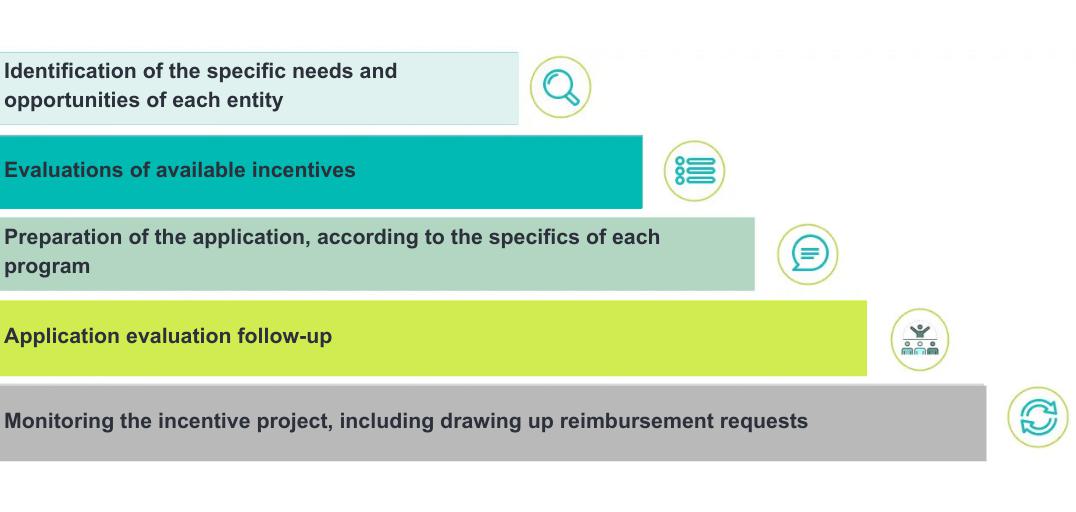 We support our clients in obtaining financial and tax incentives by developing the following approach: